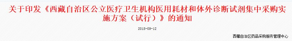 其中,《方案》正式明确,西藏自治区所有参与集中采购的医用耗材试剂,自公布之日起(9月12日)要严格执行“两票制”。