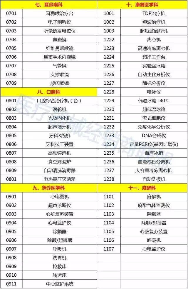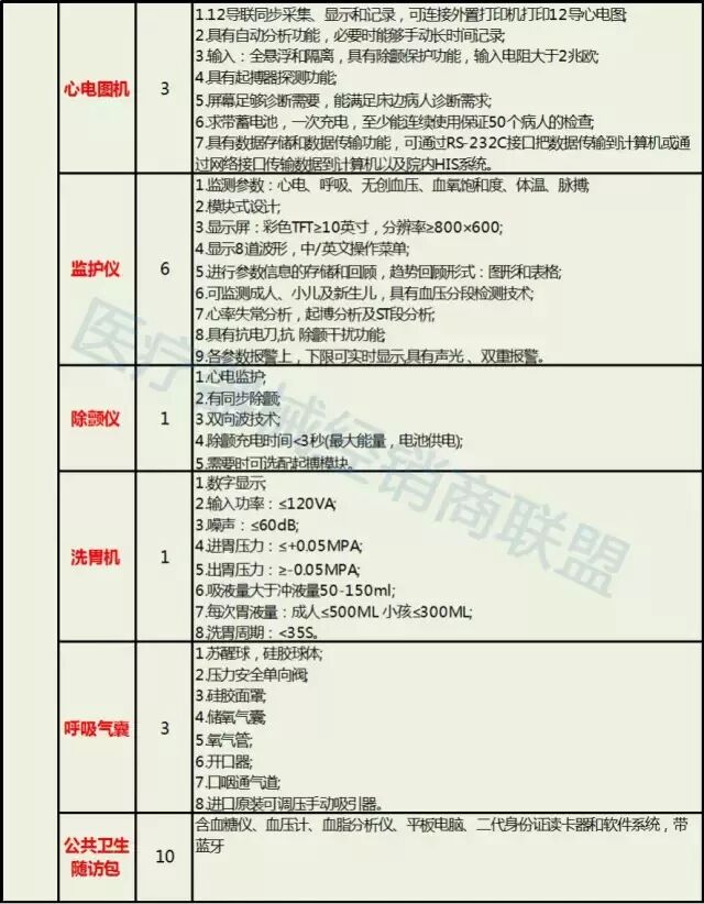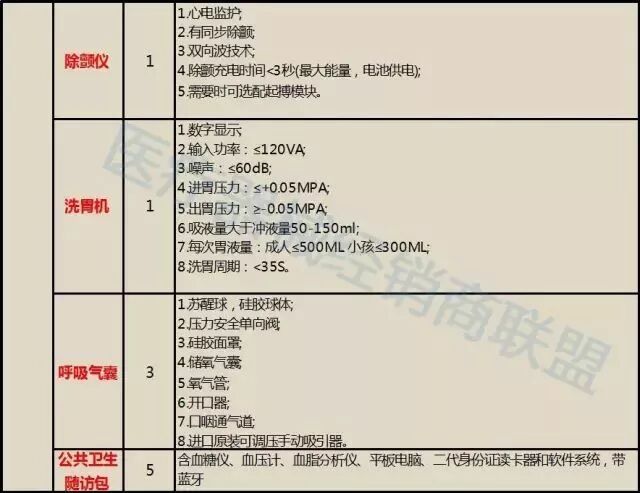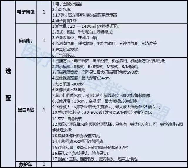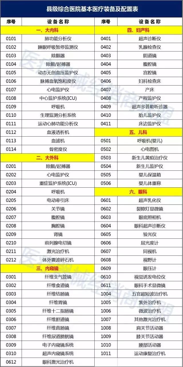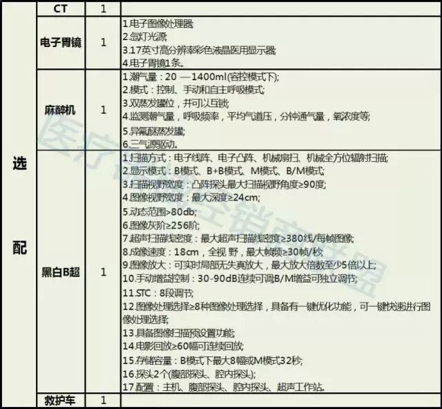 首先是县级医院医疗器械配置表: